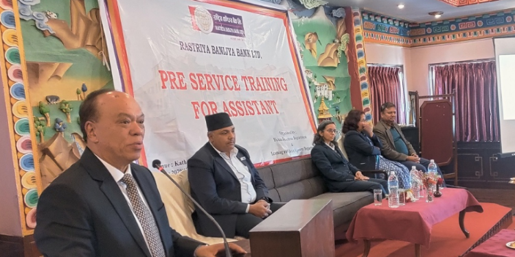 काठमाडाैँ।चैत २० गते राष्ट्रिय वाणिज्य बैंकद्धारा ५४ जना नवनियुक्त कर्मचारीहरुलाई पूर्व सेवाकालिन तालिम प्रदान राष्ट्रिय वाणिज्य बैंक लिमिटेडले लोक सेवा आयोगबाट सञ्चालित लिखित परीक्षा तथा अन्तरवार्ताबाट बागमती र गण्डकी प्रदेशकालागि छनौट भएका नवनियुक्त सहायक प्रशासन सेवाका ५४ जना कर्मचारीहरुलाई सोमबारबाट चौध दिने पूर्व सेवाकालिन तालिम काठमाडौंमा सञ्चालन गरिरहेको छ । तालिमको उद्घाटन गर्दै बैंकका प्रमुख कार्यकारी अधिकृत किरणकुमार श्रेष्ठले सैद्धान्तिक ज्ञानले मात्र प्रतिष्पर्धामा सफलता हासिल गर्न नसकिने हुँदा यो दुईहप्ताको तालिमबाट प्राप्त हुने व्यवहारिक ज्ञानले कार्यस्थलमा नागरिकलाई सेवा दिन सहयोग पुगि संस्थाको उत्पादकत्व बृद्धि गर्न यो युवा जनशक्ति उपयोग हुने बताउनुभयो । उहाँले अन्य प्रदेशका सहायक स्तरका कर्मचारीहरुको भर्ना प्रक्रिया छिट्टै पूरा भएपछी पुरानो बैंक नयाँ कर्मचारीलेयुक्त हुने बताउनुभयो । कार्यक्रममा बैंकका नायब प्रमुख कार्यकारी अधिकृत सरस्वती अधिकारीले नवनियुक्त कर्मचारीहरुलाई कार्यस्थलमा जिम्मेवारी बहन गर्दा अपनाउनुपर्ने कर्तव्य बोध गराउदैं ग्राहकहरुको बैंकप्रतिको विश्वास बढ्ने गरी काम गर्नुपर्ने बताउनुभयो । कार्यक्रममा बैंकका उपकार्यकारी अधिकृत देवेश प्रसाद लोहनीले आजकाल प्रविधिको प्रयोग मार्फत जोखिम बढिरहेकाले ग्राहकलाई सचेत भएर डिजिटल बैंकिङ्ग सेवा प्रयोग गर्न सिकाउनुपर्ने बताउनुभयो । कार्यक्रममा मानव संशाधन विभागका विभागीय प्रमुख भीमप्रसाद घिमिरेले नवनियुक्त सहायक प्रशासन सेवाका ५४ जना कर्मचारीहरुलाई बैंकको कर्मचारी सेवा विनियमावली बमोजिम शपथ गराउनु भएको थियो ।