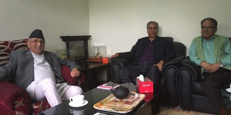 तीन शीर्ष नेताहरूबीच नक्कली भुटानी शरणार्थी प्रकरणलगायत समसामयिक विषयमा कुराकानी हुने बताइएको छ।