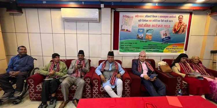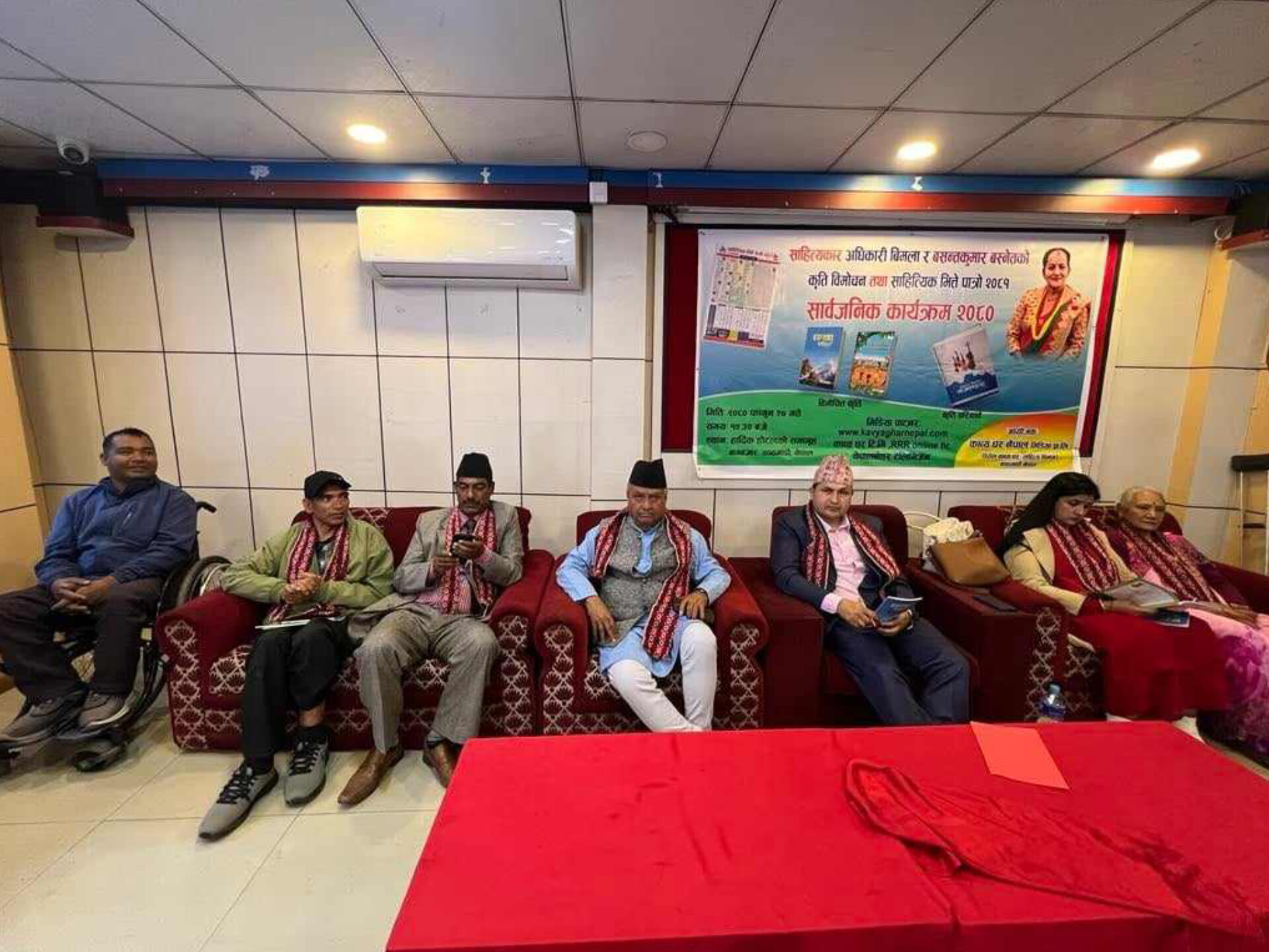 जयराम बिडारी_ फागुन २८ , काठमाडौं। काव्य घर । काव्य घर नेपाल मिडिया प्रा.लि.को पेरोल काव्य घर नेपाल साहित्य विभागद्धारा आयोजना गरिएको एक भव्य कार्यक्रमका बीच साहित्यकार अधिकारी विमलाको ‘बाल बगैँचा’ कवितासङ्ग्रह तथा अर्का साहित्यकार बसन्तकुमार बस्नेतको‘बसन्तका कविताहरु’ कवितासङ्ग्रह सार्वजनिक गरिएको छ । बागबजार स्थित होटल हार्दिकमा आयोजित उक्त कार्यक्रममा काव्यघर नेपाल मिडियाका अध्यक्ष राजकुमार खड्गाको सभापतित्व तथा भ्रष्टाचार बिरोधी अभियानका अभियन्ता तथा कालो सूर्य उपन्यासका लेखक बरिष्ठ साहित्यकार भरत जङ्गमको प्रमुख आतिथ्य तथा बिशिष्ट अतिथि प्रा.डा.गोविन्द गुरागाई,प्रा.डा.रमेश शुभेच्छु,हिमलाल अधिकारी,बाल साहित्य लेखनका क्षेत्रमा चर्चित साहित्यकारहरु गङ्गा कर्माचार्य पौडेल,तथा ललिता ‘दोषी’,बरिष्ठ पत्रकार तथा साहित्यकार पुरुषोत्तम दाहाल, अनेसास नेपाल च्याप्टरकी वरिष्ठ उपाध्यक्ष मन्जिला अनिल,देवी अधिकारी,दिपेन्द्रनाथ शर्मा,अम्बिका नरेन्द्र रेग्मी , घमप्रसाद अधिकारी लगायत सयौंका संख्यामा उपस्थित साहित्यानुरागीको समुपस्थितिमा उक्त दुई कृतिहरू तथा साहित्यिक भित्ते पात्रो २०८१ सार्वजनिक गरिएका छन् । राष्ट्रिय गानबाट शुरु गरिएको उक्र कार्यक्रमा अधिकारी विमलाका नाति नातिनी युभान र आभ्यानाको प्रस्तुति रहेको थियो ।