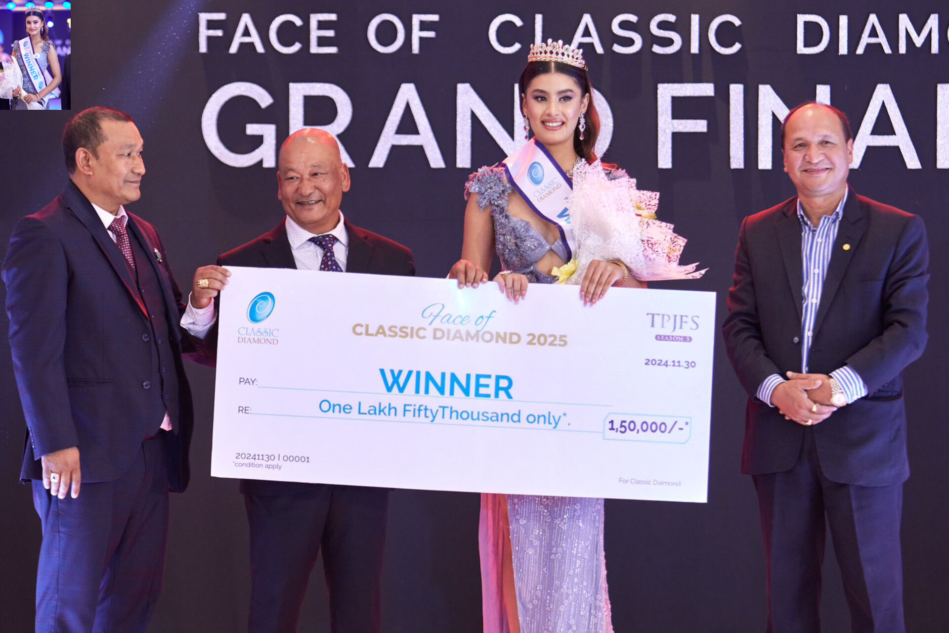 क्लासिक डाइमन्डको ग्रान्ड फेशन र ज्वेलरी शो आगामी ४ र ५ माघमा काठमाडौंमा आयोजना हुनेछ । सोही कार्यक्रममा विजेताहरूलाई सम्मान र पुरस्कार प्रदान गरिनेछ । देशभरका विभिन्न क्षेत्रबाट अडिसनमार्फत छानिएका २६ मोडललाई करिब एक महिना तालिम दिएर प्रतियोगितामा सहभागी गराइएको थियो। उनीहरूमध्ये उत्कृष्ट पाँचलाई फाइनलका लागि छनोट गरी विजेताहरू घोषणा गरिएको हो ।
