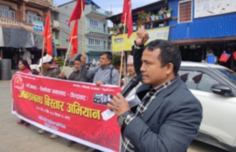 टपटेन सम्वाददाता २०८१ चैत्र १२ , काठमाडौ / क्रान्तिकारी कम्युनिष्ट पार्टी नेपालले जनसम्बन्ध विस्तार अभियानका लागि केन्द्रबाट संचालन गरेको ४ वटै टोलीले जनताका बीचमा प्रचार प्रसार ,सदस्यता वितरण ,जनभेटघाट, वालपेन्टिङ ,सभा,जुलुस, कोण सभा लगायतका कार्यक्रम सम्पन्न गर्दै निरन्तर अगाडि बढिरहेको छ । अभियान टोली नेपाल– भारतको सिमाना पाँचथरको चियोभन्ज्याङबाट ४ गते उद्घाटन गरी अगाडि बढेको धनकुटाको सिंधुवामा माइकिङ् ,जुलुश प्रदर्शन र कोण सभा सम्पन्न गरेको छ । कोण सभालाई पार्टीका केन्द्रीय सदस्य दिल्ली बोहोरा र क्रान्तिकारी किसान महासंघका सचिवालय सदस्य बालकृष्ण सुवेदीले सम्बोधन गर्नु भएको थियो ।