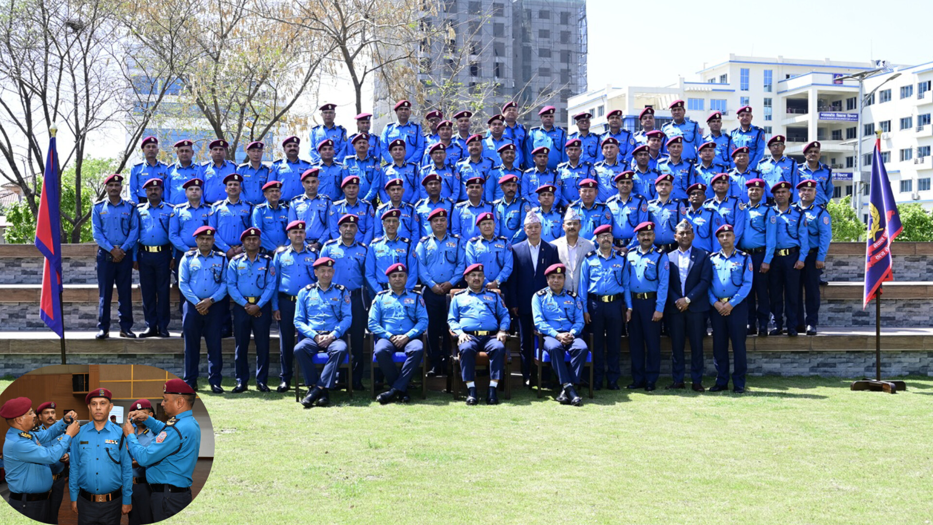 काठमाडौं, १० वैशाख। नेपाल सरकार गृह मन्त्रालय (सचिवस्तर) को २०८२ वैशाख ९ गतेको निर्णयले प्रहरी वरिष्ठ नायव निरीक्षकबाट प्रहरी निरीक्षक पदमा पदोन्नति हुनुभएका ६१ जना मध्ये ६० जना प्रहरी निरीक्षकहरू दर्ज्यानी चिन्हद्वारा सुशोभित हुनुभएको छ । प्रहरी महानिरीक्षक दिपक थापाले नेपाल प्रहरी प्रधान कार्यालयमा बुधबार आयोजित एक समारोह बीच उहाँहरूलाई दर्ज्यानी चिन्हद्वारा सुशोभन गर्नुभएको हो ।