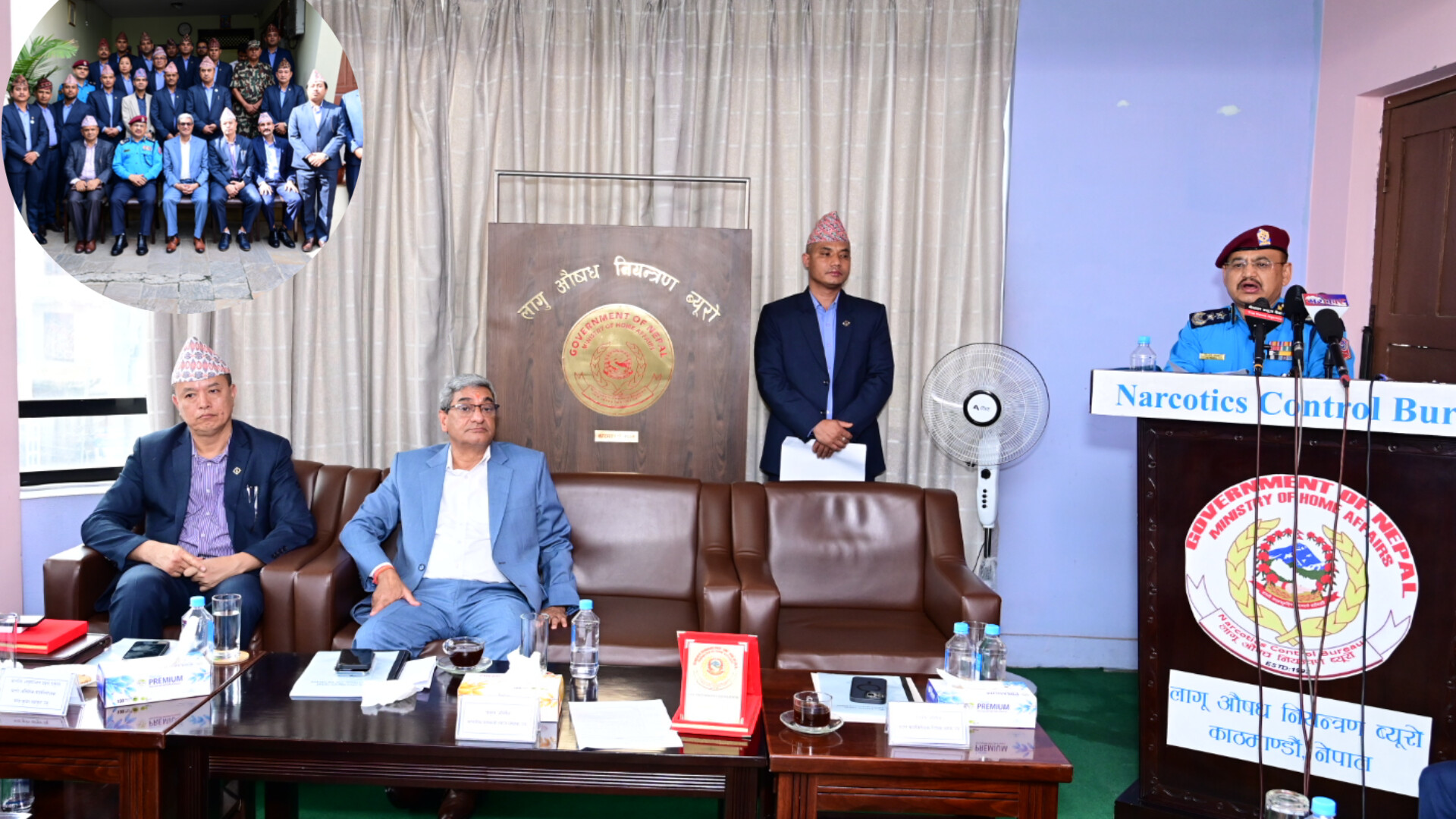 प्रहरी महानिरीक्षक थापाले लागूऔषध नियन्त्रण र रोकथाम कुनै एक मात्र निकायबाट सम्भव नहुने हुँदा समाजका हरेक वर्ग, तह र तप्काका सरोकारवाला निकायहरूको सामूहिक सहकार्य अपरिहार्य रहेको उल्लेख गर्दै लागूऔषध रोकथाम तथा नियन्त्रणमा स्थानीय तह, विद्यालय र हरेक परिवारसँगै समाजका अन्य सरोकारवाला निकायहरू समेतको निरन्तर साथ र सहयोगको अपेक्षा रहेको बताउनुभयो । केन्द्रीय अनुसन्धान ब्यूरोका प्रमुख प्रहरी अतिरिक्त महानिरीक्षक चन्द्र कुबेर खापुङले स्वागत मन्तव्य व्यक्त गर्नुभएको उक्त कार्यक्रममा लागूऔषध नियन्त्रण ब्यूरोका प्रमुख प्रहरी वरिष्ठ उपरीक्षक कृष्ण प्रसाद कोइरालाले लागूऔषध नियन्त्रण ब्यूरोको परिचय, कार्यरत जनशक्ति तथा उपलब्ध साधन स्रोतको विवरण, नेपालमा लागूऔषध अपराधको वर्तमान अवस्था, लागूऔषध अपराधको विश्लेषण, ब्यूरोबाट गरिएका प्रहरी कारवाहीहरू, समस्या एवम् चुनौति लगायतका विषयमा प्रस्तुतीकरण गर्नुभएको थियो ।
