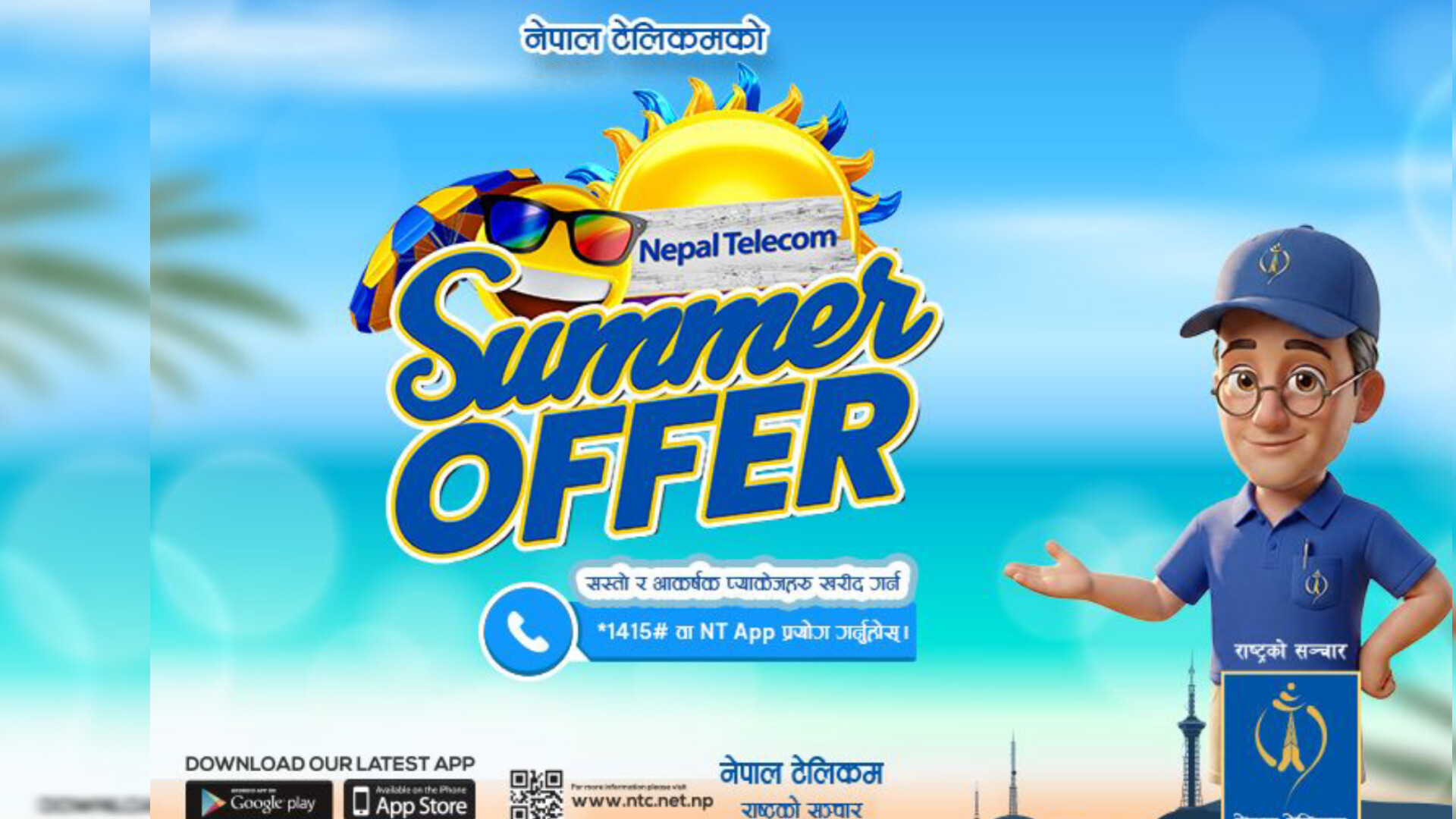डाटा प्याकतर्फ ५४९ रुपैयाँमा ४० जीबी र ९९९ रुपैयाँमा १०० जीबी डाटा उपलब्ध हुनेछ। दैनिक प्रयोगका लागि ५९९ रुपैयाँमा प्रतिदिन २ जीबी तथा ३४९ रुपैयाँमा प्रतिदिन १ जीबी डाटा पाइने व्यवस्था गरिएको छ। अनलिमिटेड प्याकअन्तर्गत २५ रुपैयाँमा १ घण्टासम्म चल्ने अनलिमिटेड भ्वाइस तथा डाटा प्याक उपलब्ध छ भने ९९ रुपैयाँमा ३० दिनसम्म दैनिक प्रयोग गर्न मिल्ने ५ एमबीपीएस गतिको डाटा प्याक पनि उपलब्ध गराइएको छ। यसका अतिरिक्त, कम्पनीले विभिन्न बन्डल,एड-अन, सीयूजी, एसएमएस, एफटीटीएच, नाइट तथा कम्बो प्याकहरू समेत उपलब्ध गराएको जनाएको छ। यो समर अफर वैशाख ११ गतेदेखि लागू हुनेछ। सेवाग्राहीहरूले आफ्नो मोबाइलबाट *1415# डायल गरेर वा ‘नेपाल टेलिकम’ एपमार्फत प्याकसम्बन्धी जानकारी लिन र सेवा खरिद गर्न सक्नेछन्। साथै, कम्पनीको वेबसाइटमार्फत पनि विस्तृत जानकारी प्राप्त गर्न सकिनेछ।