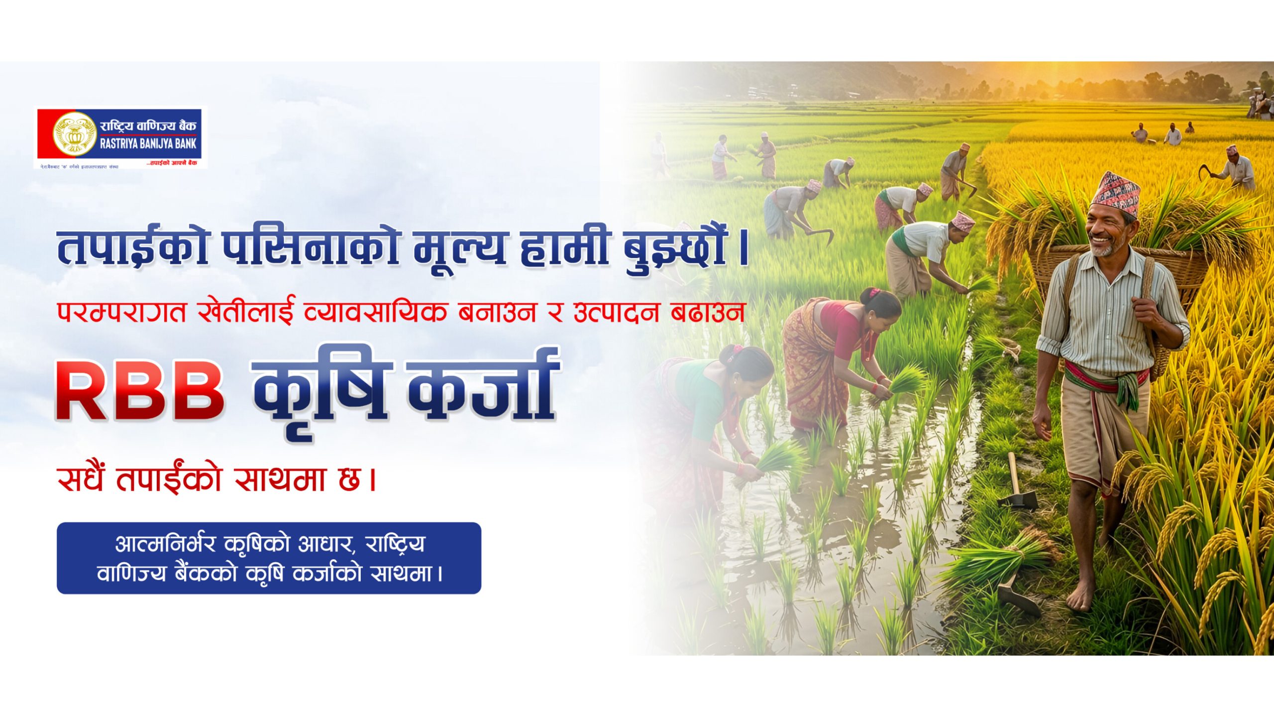 काठमाडौं, वैशाख १६ । सरकारी स्वामित्वको राष्ट्रिय वाणिज्य बैंकले कृषि क्षेत्रमा लगानीलाई उच्च प्राथमिकता दिँदै २०८२ चैत मसान्तसम्म ३९ अर्ब ५३ करोड २० लाख रुपैयाँ कृषि कर्जा प्रवाह गरेको जनाएको छ।बैंकले आधार दरमा न्यूनतम प्रिमियम राखी सस्तो ब्याजदरमा कर्जा उपलब्ध गराउँदै आएको छ। कृषक तथा कृषि उद्यमीलाई आकर्षित गर्न कृषि कर्जामा प्रशोधन शुल्कमा समेत सहुलियत प्रदान गरिएको बैंकले जनाएको छ। कुखुरापालन, बाख्रापालन, गाई तथा भैंसीपालन, माछापालन लगायतका क्षेत्रमा लगानी गर्दै आएको बैंकले पछिल्लो समय ‘प्रदेश विशेष कृषि कर्जा’ अन्तर्गत ४.७५ प्रतिशत ब्याजदरमा ५ करोड रुपैयाँसम्म कर्जा प्रदान गरिरहेको छ। त्यस्तै, साना किसान लक्षित ‘साना किसान सरल कर्जा’ अन्तर्गत बिना प्रशोधन शुल्क ४.७५ प्रतिशत ब्याजदरमा १० लाख रुपैयाँसम्म कर्जा उपलब्ध गराइँदैछ।